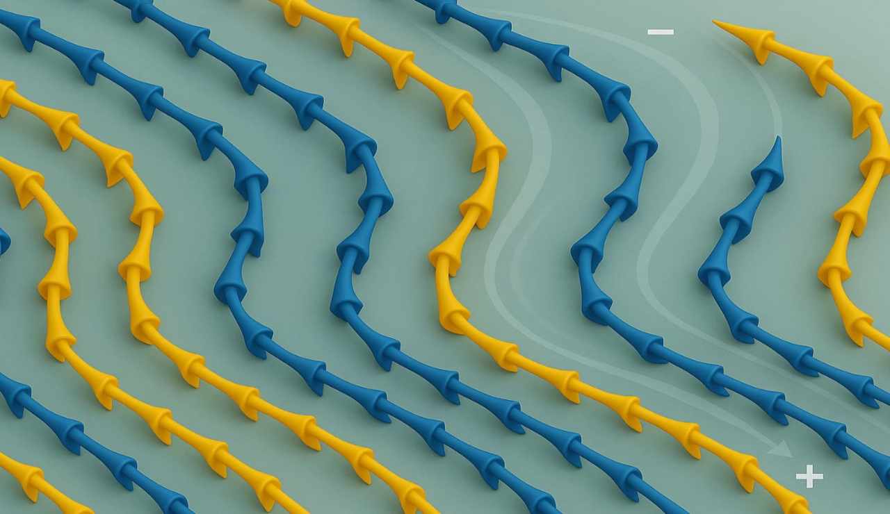 Un esempio emblematico di materiale magnetoelettrico è il cristallo verde-oliva ossiseleniuro di rame (Cu₂OSeO₃). A basse temperature, i suoi spin atomici si organizzano in strutture magnetiche esotiche, come eliche e coni, che superano di gran lunga le dimensioni della griglia atomica sottostante. Questi schemi non sono vincolati alla geometria del reticolo, rendendoli altamente modulabili e suscettibili al controllo tramite campi elettrici.